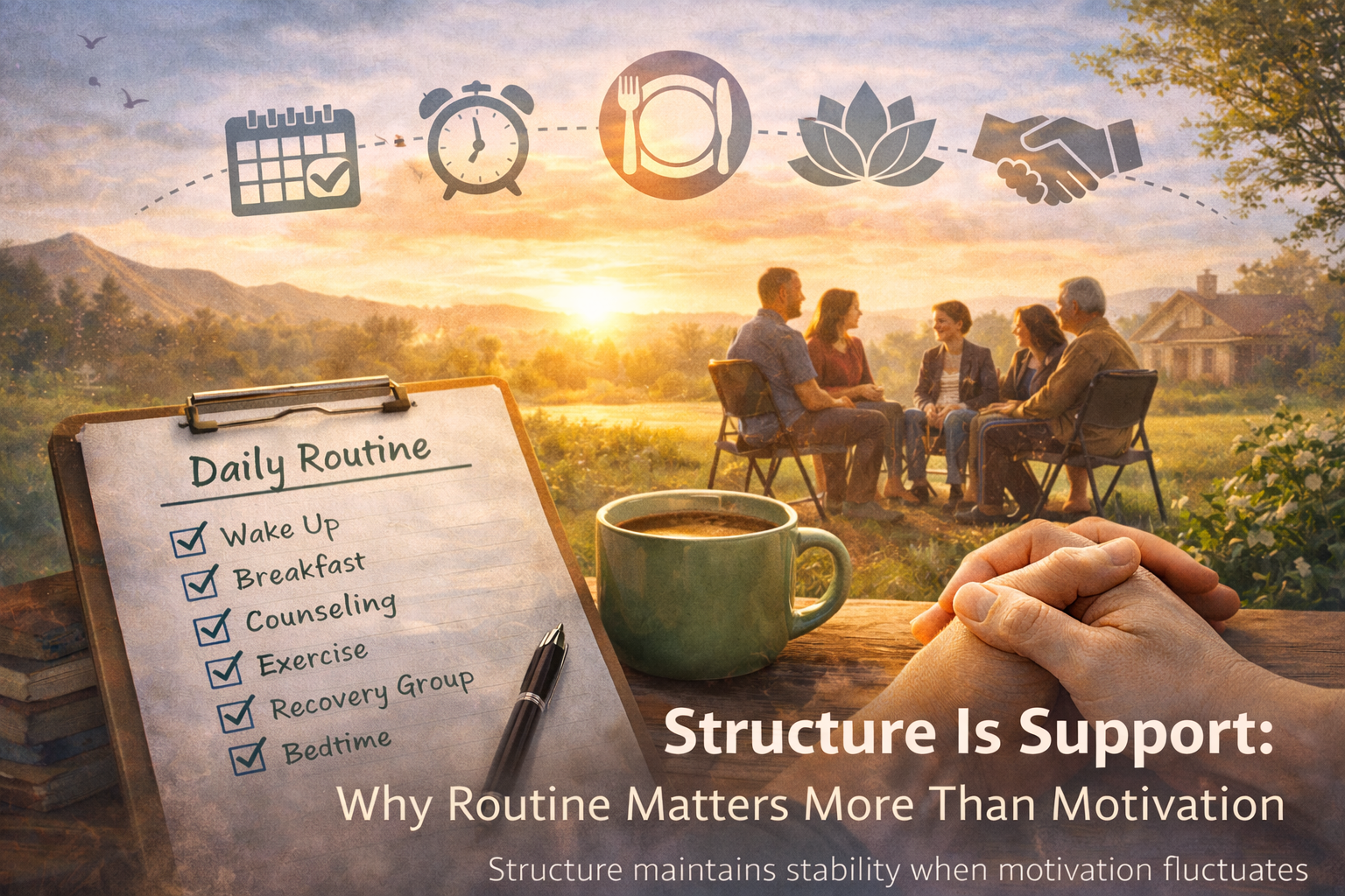 When recovery relies solely on motivation, these moments can feel destabilizing. Structure provides stability when feelings fluctuate.